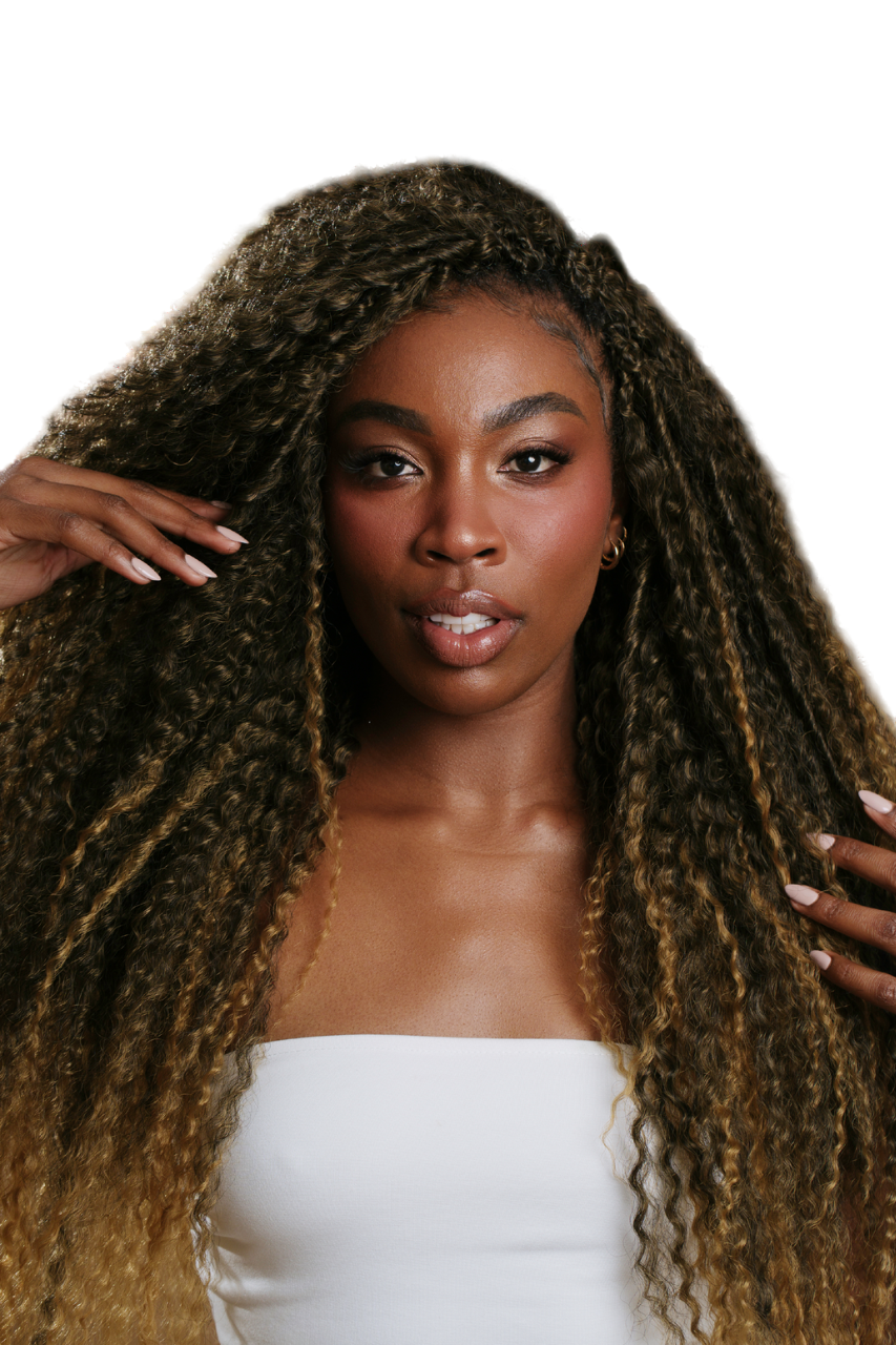 De textura suelta y natural con rizo definido y volumen ligero. Su acabado imita el cabello afrocaribeño. Puedes lavar tu cuero cabelludo con el producto instalado.